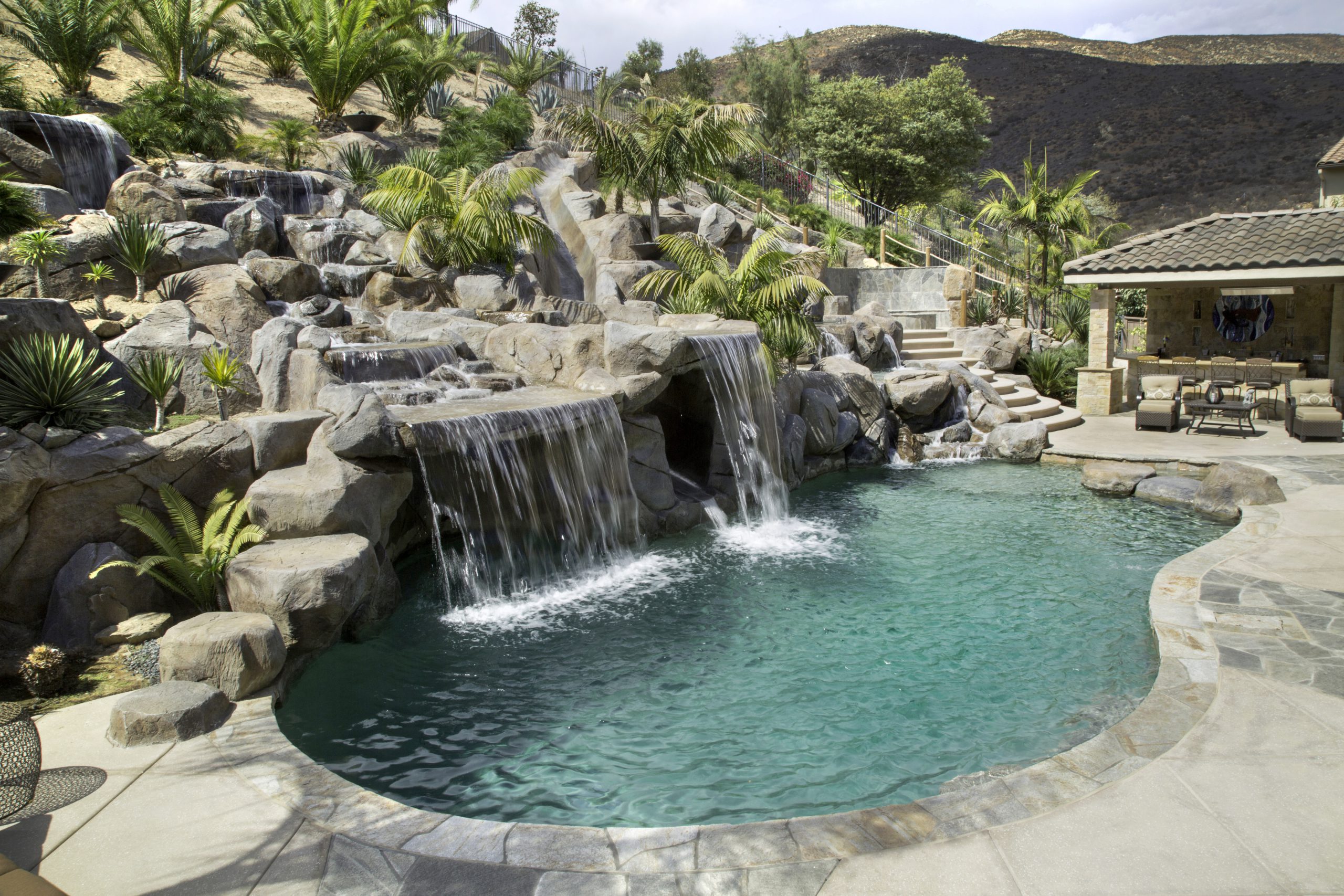 This all-tiled spa and pebble finished pool combination includes an intricate fountain located at the far end of the pool this is the definition of...